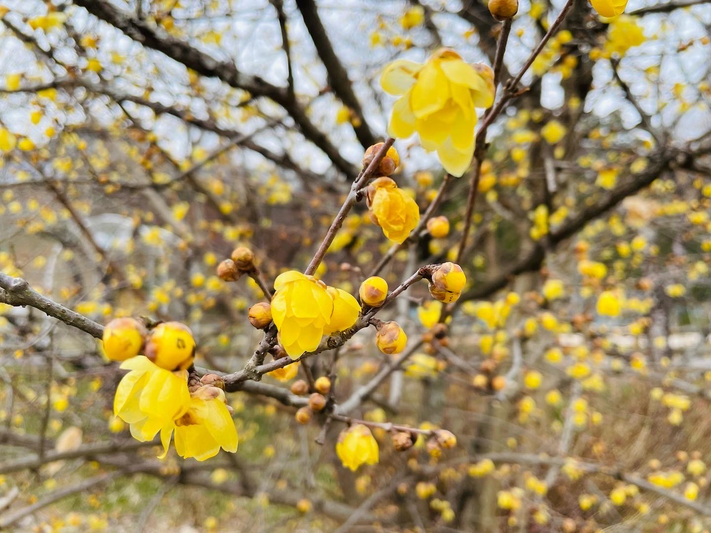ここ数日のぽかぽか陽気により、公園内の蝋梅(ロウバイ)のほのかに甘い香りが風に乗って香ってきます(*^^*)
