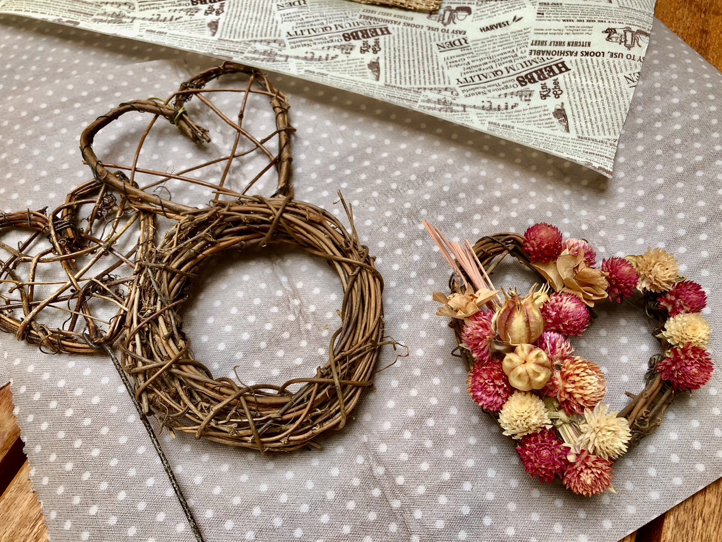 ●リース作り体験 参加費:1回 500円(センニチコウ 付け放題)
