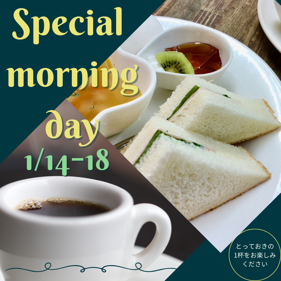 ティーハウス「ハーブレンド」では、毎月好評のスペシャルモーニングデーを開催中!!1月は14日(水)~18日(日)の5日間となります。